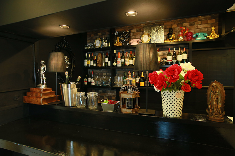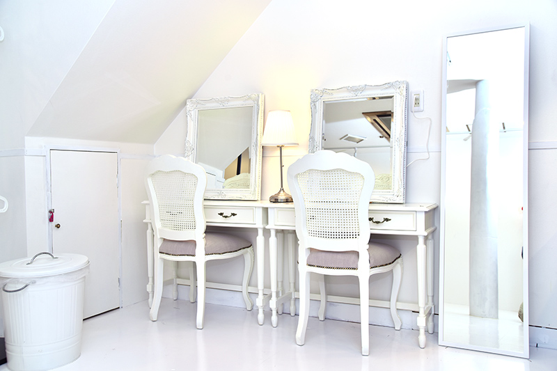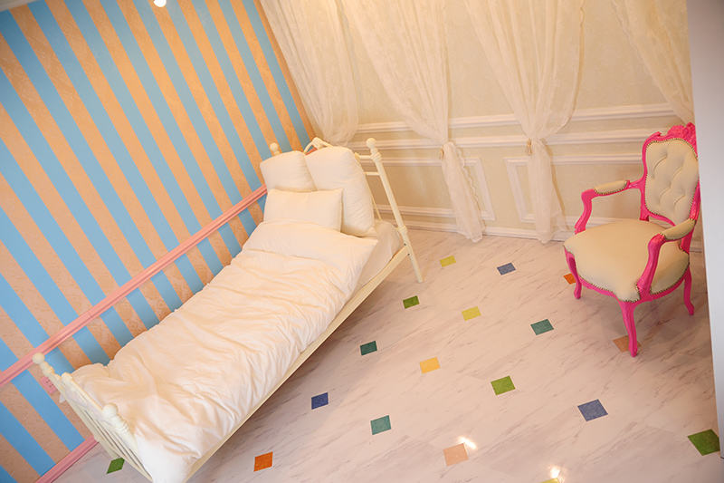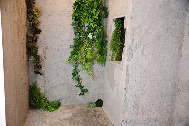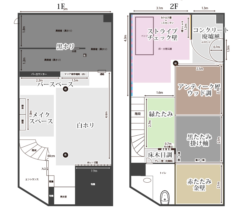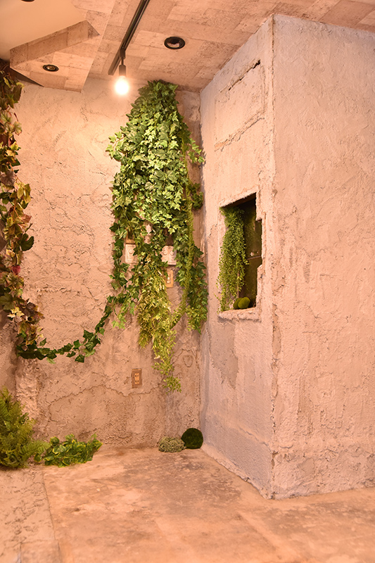 2階 ストライプチェック壁、コンクリート廃墟風、小ステージ